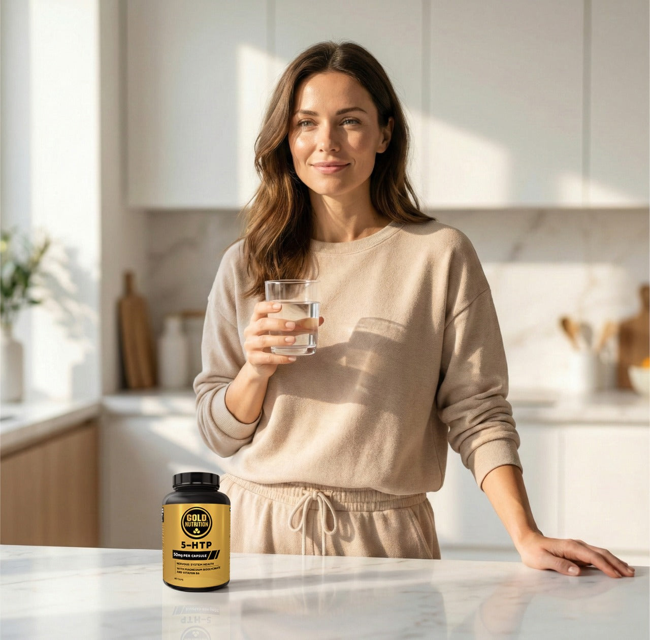 • Melhoria do Humor e Bem-Estar: Atua como precursor direto da serotonina, ajudando a equilibrar o estado emocional e a aliviar sintomas de desânimo.