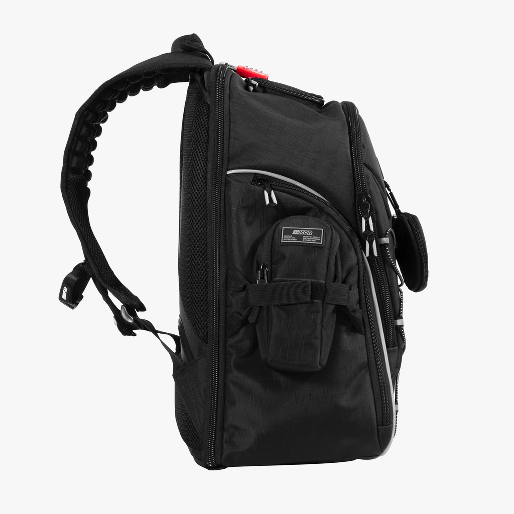 The Scicon Sports Backpack Pro 35L is designed for athletes needing organized, durable storage for sports and technical gear. It features dedicated compartments for shoes, helmet, socks, eyewear, and clothing, plus padded pockets for laptops, tablets, and documents. The dual-back panel allows secure attachment to your suitcase for easy airport travel. Made from CrossGuard™ tear-resistant fabric with a TwistZip™ Double Coil zipper, it includes a multifunction soft case and headset pouch for ultimate functionality on the move.