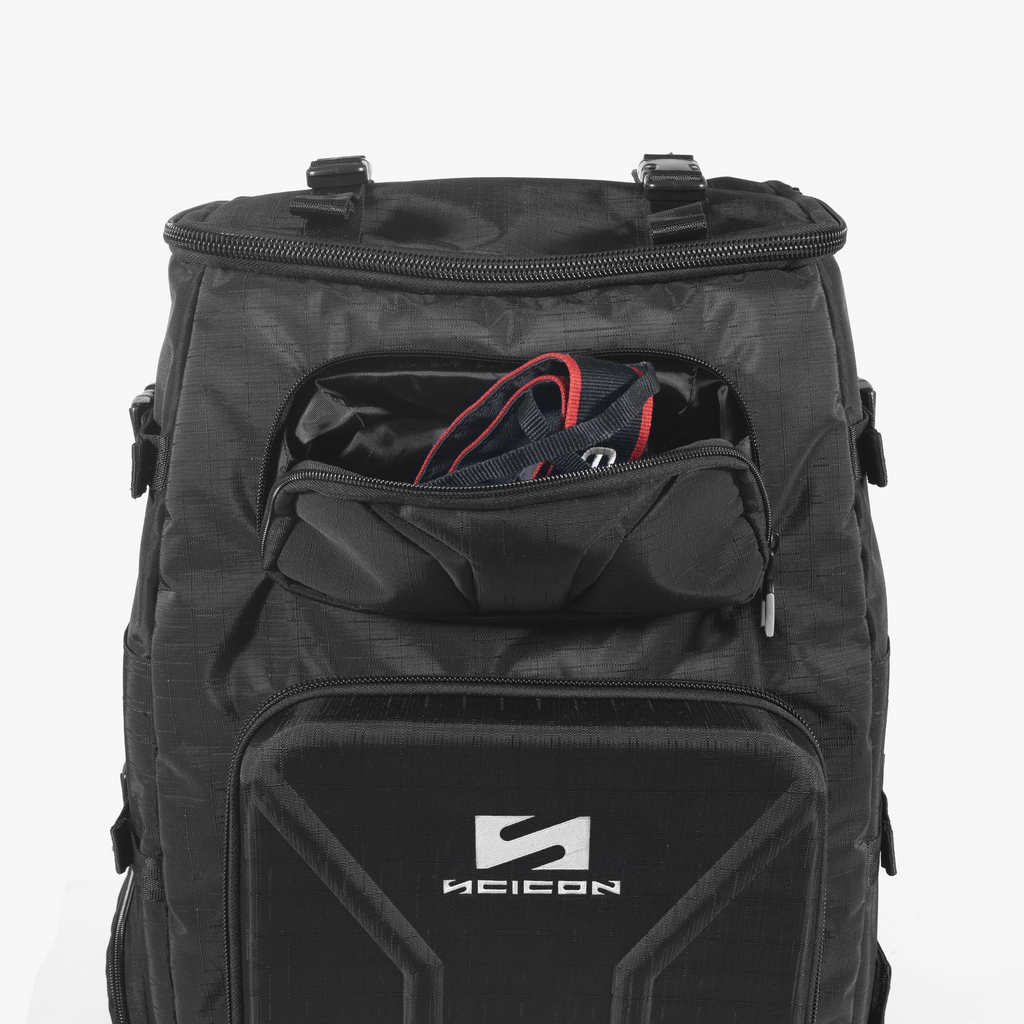 The Scicon Sports Camera Backpack Pro 55L is designed for professional photographers, providing optimal organization for cameras, lenses, and accessories. It features a dedicated organizer for cables, batteries, filters, and other gear, side straps for tripod attachment, and a rain cover for protection in extreme conditions. Made in Italy from durable Crossguard™ tear-resistant fabric, it can carry 5–6 lenses, a 15” laptop, a 10” tablet, phones, and more. Recognized as carry-on luggage by most airlines.